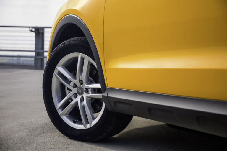 Linia designu nadaje Audi Q3 szczególnie elegancki wygląd. Zewnętrzne wloty powietrza są podzielone poziomo; osłona podwozia wykończona jest matowym srebrem na przednim i tylnym zderzaku. Kontrastujące obszary zderzaków oraz nadkola mają kolor szaro-kamienny.
