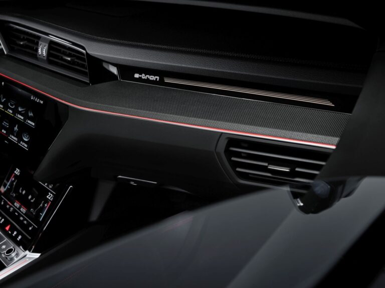 Wnętrze Audi Q8 e-tron wykorzystuje materiały z recyklingu do izolacji i tłumienia, a także do wykładzin. Dekoracyjną inlayę nad wyświetlaczem, zwaną Tech Layer, można zamówić z nowego antracytowego materiału technicznego, który częściowo składa się z recyklingowanych butelek PET. W pakiecie wyposażenia S line sportowe fotele obite są sztuczną skórą i materiałem mikro włóknowym Dinamica. Dinamica wykonana jest z maksymalnie 45 procent włókien poliestrowych, które są wytwarzane z recyklingowanych butelek PET, używanych tekstyliów i resztek włókien. W przeciwieństwie do poprzedniej jakości mikro włókien, produkcja Dinamica jest również wolna od rozpuszczalników – kolejny wkład w ochronę środowiska.