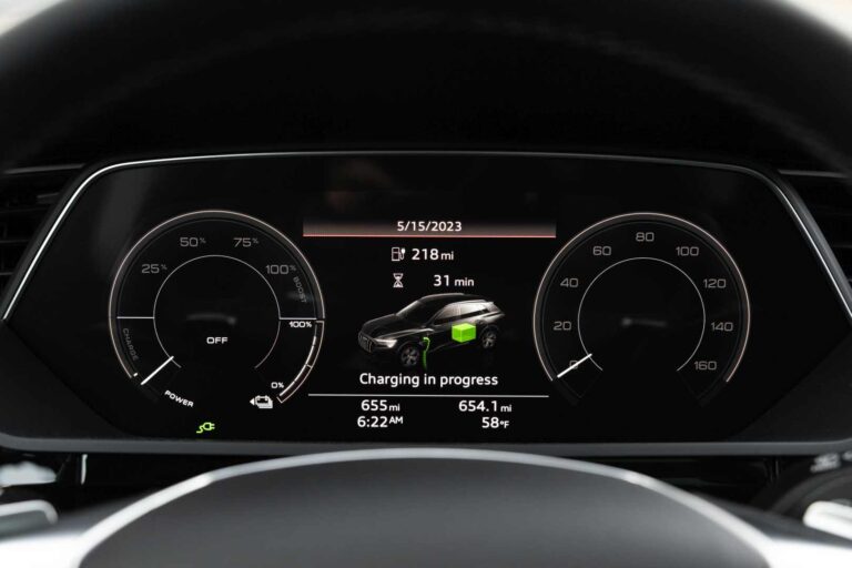 Można wybrać dwa rozmiary akumulatorów. Akumulator Q8 50 e-tron ma pojemność 89 neto kilowatogodzin (95 brutto kWh), podczas gdy mocniejsze wersje Q8 55 e-tron i SQ8 e-tron mają 106 neto kWh (114 brutto kWh). Dzięki dostosowaniu systemu zarządzania akumulatorami, pojemność akumulatora dostępna dla klientów również wzrosła. Na stacji ładowania o wysokiej mocy, Audi Q8 50 e-tron osiąga maksymalną moc ładowania wynoszącą 150 kW. W przypadku Q8 55 e-tron i SQ8 e-tron maksymalna moc ładowania wzrasta do 170 kW. Duży akumulator może być naładowany od 10 do 80 procent w około 31 minut podczas idealnych warunków, co odpowiada zasięgowi do 420 kilometrów (zgodnie z WLTP). Na stacji ładowania AC lub wallboxie Audi Q8 e-tron ładowany jest z mocą do 11 kW. Audi oferuje opcjonalną moc ładowania AC do 22 kW.