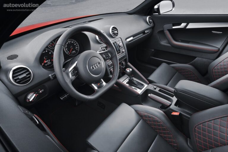 Dynamiczny styl odzwierciedla się również w wnętrzu, które jest całkowicie czarne i posiada liczne logo RS3. Sportowe fotele z tapicerką z Fine Nappa są standardem; wstawki mają wykończenie Piano. W systemie informacji dla kierowcy znajdują się wskaźnik ciśnienia doładowania, termometr oleju oraz stoper okrążeń. Instrumenty i dźwignia wybierania są specjalnie zaprojektowane.