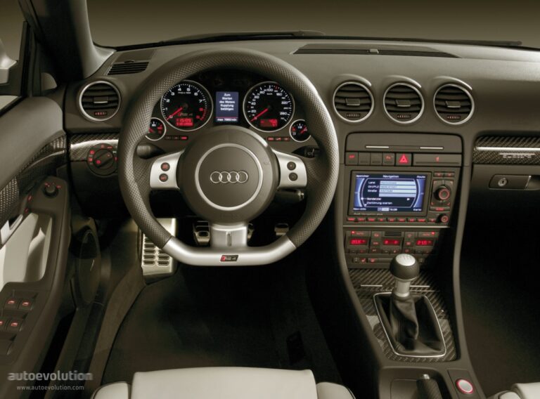 W środku, RS4 miał wykończenie z włókna węglowego na konsoli środkowej, panelach deski rozdzielczej i drzwiach. W zestawie znajdowały się także kierownica z płaskim dnem i aluminiowe pedały. Samochód był wyposażony w 6-biegową manualną skrzynię biegów, co mogło podnieść jakość jazdy, choć niekoniecznie komfort w codziennym ruchu drogowym. RS4 Cabriolet miał sportowe fotele, a fotele kubełkowe były dostępne jako opcja. Miękki dach można było złożyć w 21 sekund za pomocą jednego przycisku.