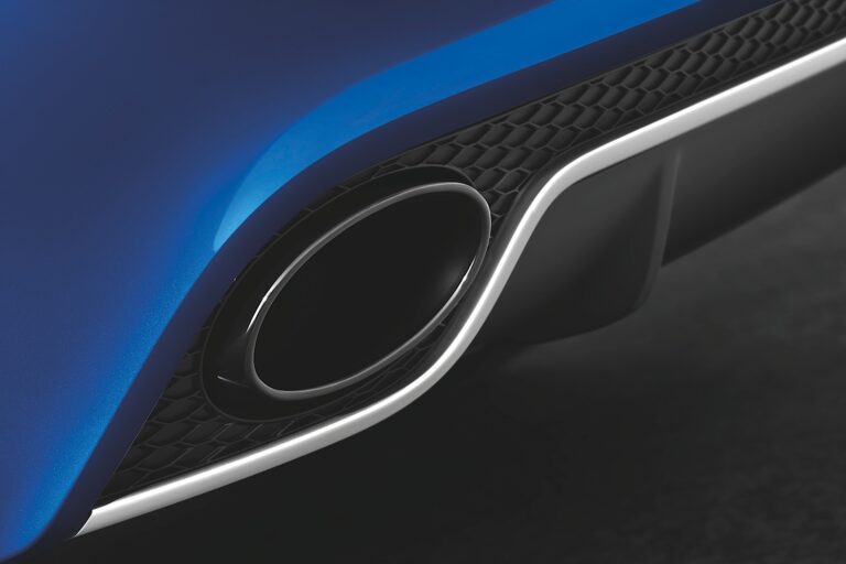 Kontur malowany w kolorze nadwozia (dostępny opcjonalnie w aluminiowym wyglądzie) dzieli dyfuzor na dwie sekcje, z górną sekcją wyposażoną w wkładkę w strukturze plastra miodu.