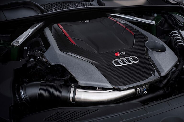 Silnik 2.9 TFSI V6 bi-turbo, który Audi opracowało od podstaw, oferuje wyraźny wzrost mocy i efektywności, a także niezrównanie pełne brzmienie RS. Generuje moc 331 kW (450 hp) i maksymalny moment obrotowy 600 Nm (442.5 lb-ft) – o 170 Nm (125.4 lb-ft) więcej niż w poprzednim modelu – dostępny w szerokim zakresie obrotów silnika od 1,900 do 5,000 obr/min. Topowy model w rodzinie A5 przyspiesza od 0 do 100 km/h (62.1 mph) w 3.9 sekundy i osiąga prędkość maksymalną 250 km/h (155.3 mph) – z opcjonalnym pakietem dynamicznym RS może nawet osiągnąć 280 km/h (174.0 mph).