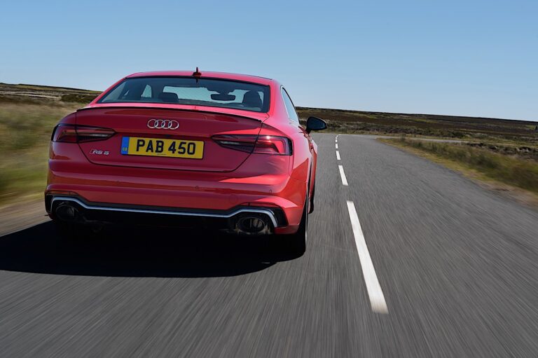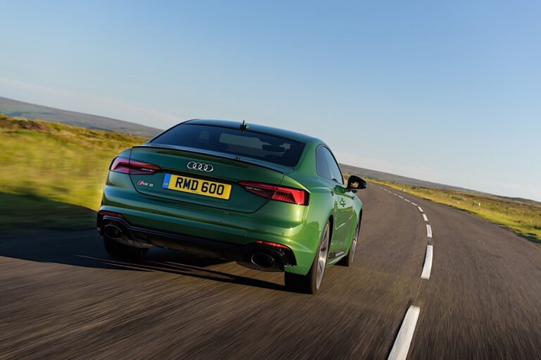W porównaniu do reszty gamy Audi S5, RS5 miało wiele różnic. Grill był szerszy i węższy, a siatka w kształcie plastra miodu oraz nawiewy i kratki wentylacyjne obok reflektorów Matrix-LED to tylko niektóre z tych cech. Z tyłu dyfuzor pod zderzakiem pełnił nie tylko funkcję estetyczną, ale aktywnie pomagał w utrzymaniu samochodu na drodze.