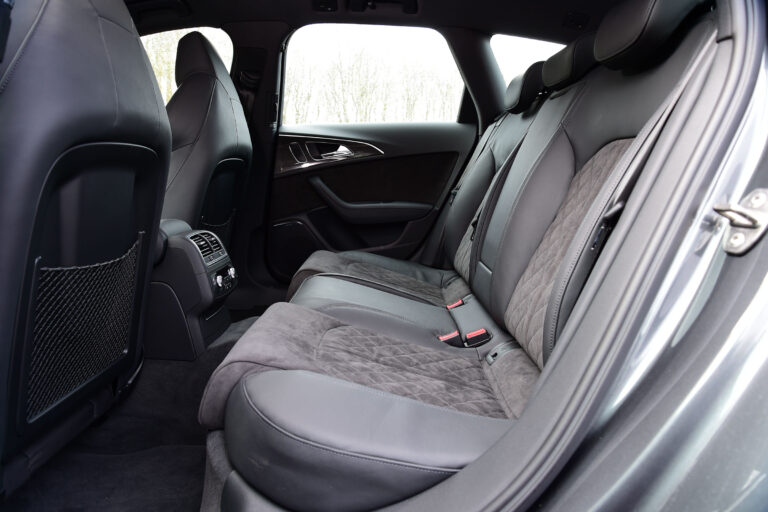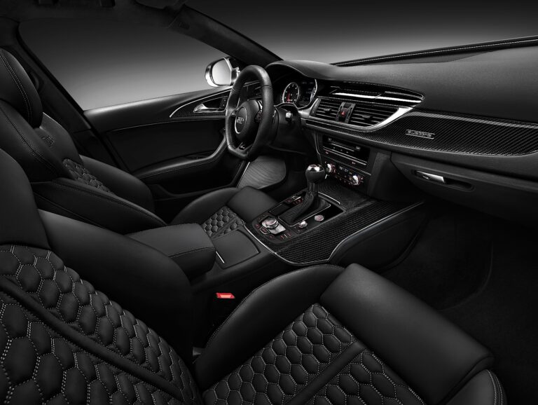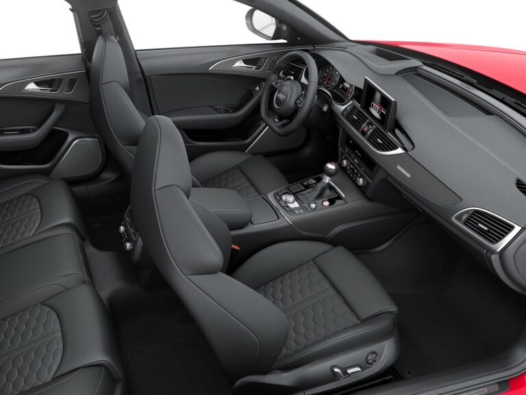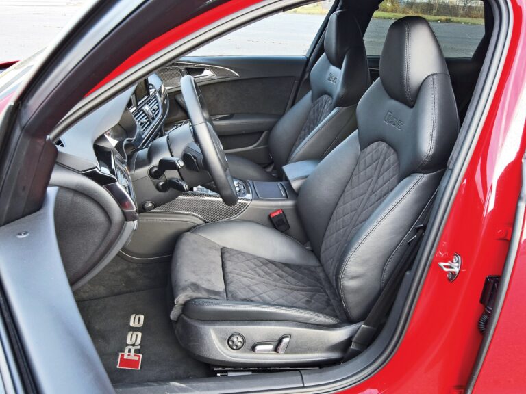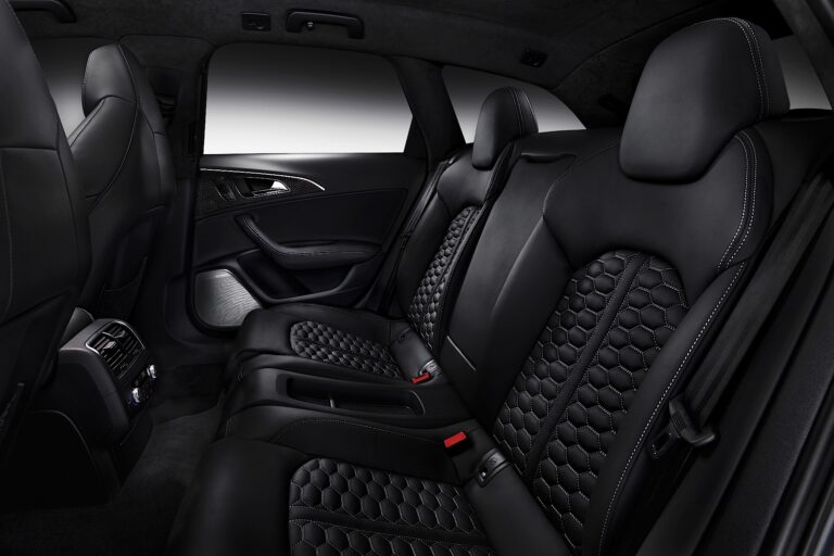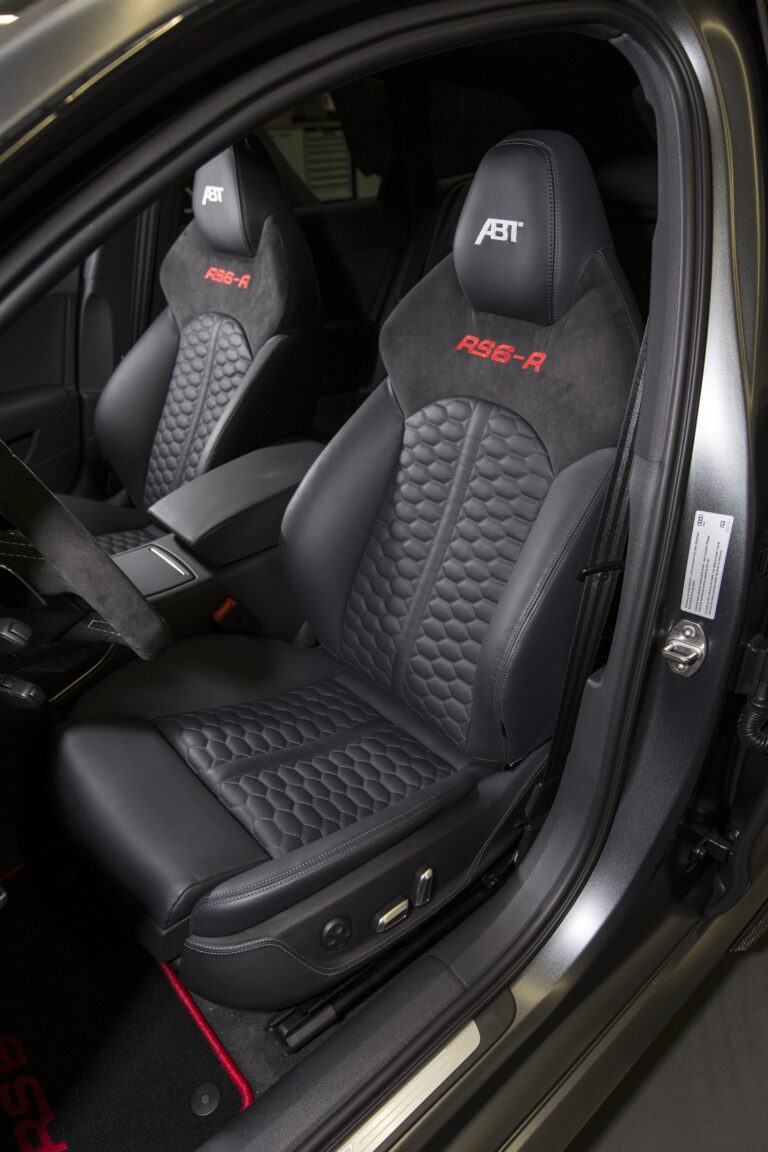 Fotele sportowe RS z wyraźnymi bocznymi podparciami, zintegrowanymi zagłówkami i wyciśniętymi logo RS6 są standardem. Fotele są pokryte kombinacją czarnej Alcantary i skóry; centralne części mają diamentowe pikowanie. Fotele mogą być także pokryte wysokiej jakości skórą Valcona o wykończeniu w romby, w kolorze czarnym lub lunar silver. Audi oferuje opcjonalne fotele komfortowe z elektryczną regulacją z funkcją pamięci; fotele przednie mogą być także wyposażone w funkcje wentylacji i masażu. Dzięki programowi personalizacji Audi exclusive, quattro GmbH oferuje bogaty wybór opcji wnętrza. Pakiet projektowy w czerni z czerwonymi szwami i czerwonymi pasami bezpieczeństwa to jeden z przykładów.