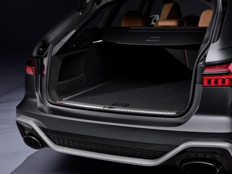Nowe Audi RS6 Avant jest jeszcze bardziej przestronne we wnętrzu. Pojemność bagażnika wynosi od 565 do 1 680 litrów, a szerokość załadunku między nadkolami zwiększyła się do 1,05 metra, co oznacza wzrost o 14 mm w porównaniu do poprzedniego modelu. Tylną kanapę dzieloną w proporcji 40:20:40 można wygodnie zwolnić i złożyć z bagażnika – długość bagażnika wynosi teraz 1,99 metra. Elektryczna klapa bagażnika i pokrywa bagażnika są standardem. W połączeniu z opcjonalnym kluczem komfortowym, kontrola czujników pozwala na otwarcie klapy bagażnika za pomocą gestu nóg. Opcjonalny uchwyt do holowania z elektrycznym zwolnieniem jest również dostępny. Opcjonalnie dostępny jest także system asystenta przyczepy oparty na kamerze, który pomaga kierowcy podczas manewrowania i cofania z przyczepą.
