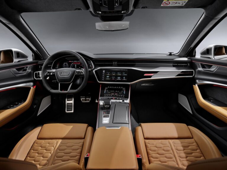 Nowoczesny design wnętrza podkreśla charakter nowego Audi RS6 Avant, z orientacją na kierowcę i wkładkami z matowego, szczotkowanego ciemnego aluminium. Dzięki swojemu poziomemu układowi i warstwowej, trójwymiarowej strukturze, deska rozdzielcza wygląda lekko i smukło. Interfejs użytkownika całkowicie cyfrowego systemu operacyjnego harmonizuje z przejrzystym designem czarnej płyty. Górny wyświetlacz MMI touch response jest prawie niewidocznie wkomponowany w architekturę czarnej płyty. Wyświetlacz „RS Monitor” zapewnia kierowcy możliwość zobaczenia przeglądu statusu temperatury komponentów napędu, maksymalnych wartości przyspieszenia g wraz z informacjami o ciśnieniu opon i temperaturze w górnym wyświetlaczu.