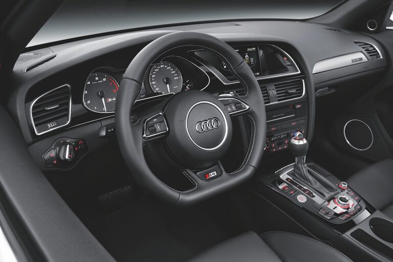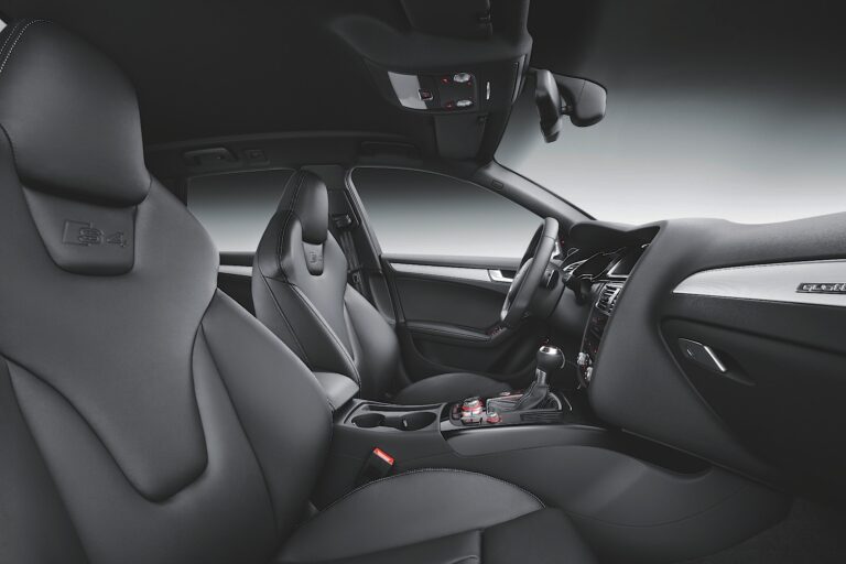 Wnętrze pojazdu wyposażono w standardzie w sportowe fotele z wysokim oparciem, a za dopłatą można było zamówić parę foteli sportowych. Aluminiowe wykończenia oraz kierownica z płaskim dnem, która miała srebrne i czerwone logo S4, dopełniały sportowy charakter samochodu. Co więcej, tylna kanapa zyskała specjalny design, unikalny dla modelu S4, z V-kształtnym wzorem przeszyć na dzielonym oparciu siedzeń.