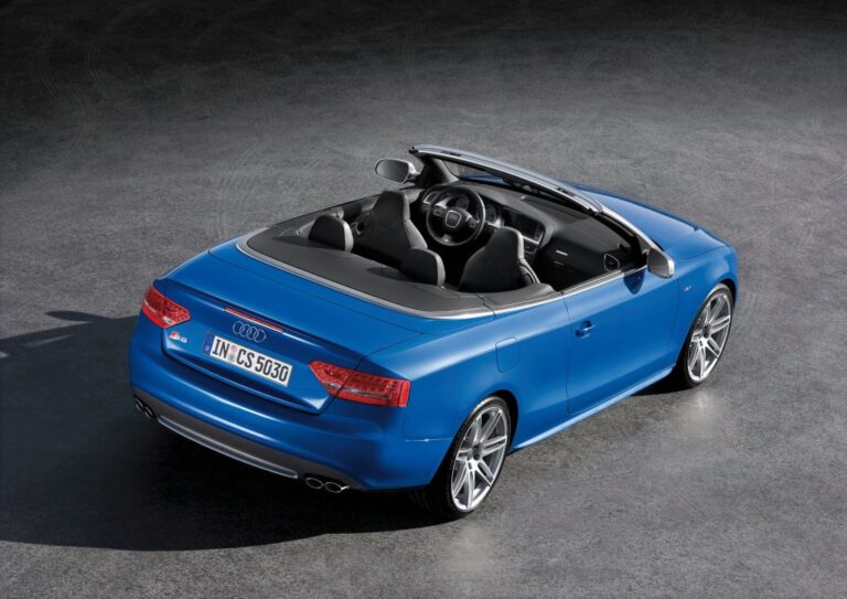 Audi S5 Cabriolet jest standardowo wyposażone w servotronic, siedmiobiegową skrzynię S tronic oraz napęd quattro. Sportowy dyferencjał dostępny jest opcjonalnie. 18-calowe aluminiowe obręcze są opasana oponami 245/40. Czarne zaciski hamulcowe zdobią emblematy S5. Oczywiście wersja S ma również specjalnie strojone zawieszenie sportowe. Akustyczny dach, który jest opcją w Audi A5 Cabriolet, także jest standardowym wyposażeniem.