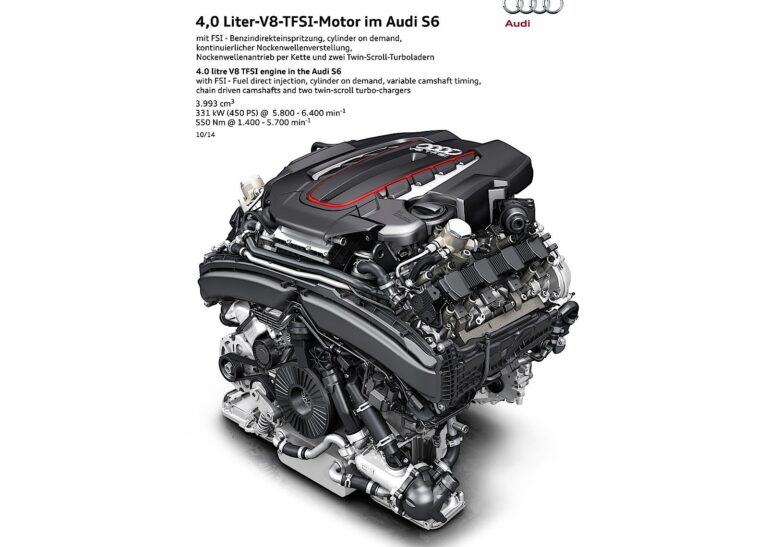 Nowe Audi S6 oraz S6 Avant to sportowe samochody na co dzień. 4.0 TFSI, biturbo V8 generujące 331 kW (450 KM), przyspiesza Sedana od 0 do 100 km/h (62,1 mph) w 4,4 sekundy. S6 Avant pokonuje ten dystans w 4,6 sekundy. Średnie zużycie paliwa wynosi zaledwie 9,2 litra na 100 kilometrów (25,6 US mpg) w Sedanie i 9,4 litra (25,0 US mpg) w Avant, co odpowiada odpowiednio 214 i 219 gramom CO2 na kilometr (344 i 352,4 g/mi). Ta wydajność jest w dużej mierze zasługą systemu cylinder on demand (COD), który aktywuje tylko cztery z ośmiu cylindrów przy częściowym obciążeniu.