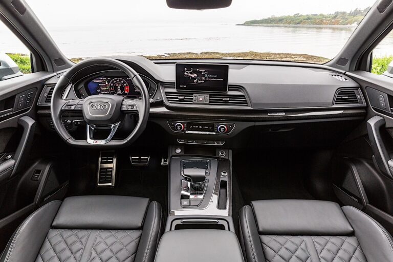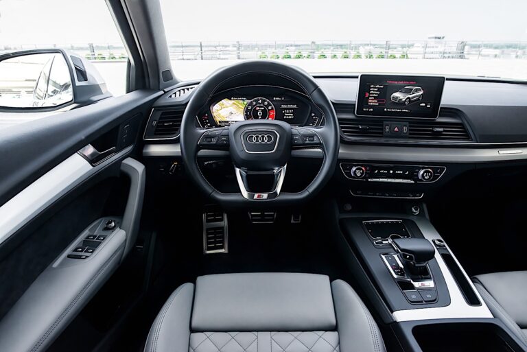 Logika obsługi MMI oparta jest na płaskich strukturach hierarchicznych stosowanych w dzisiejszych smartfonach i oferuje takie cechy jak inteligentne wyszukiwanie tekstu. Funkcja sterowania głosowego w naturalnym języku również rozpoznaje wprowadzenie z codziennej mowy. Dodatkowym, trzecim poziomem obsługi w nowym Audi SQ5 jest wielofunkcyjna kierownica pokryta skórą. Audi może dostarczyć nowo opracowany wyświetlacz head-up jako opcję. Projektuje odpowiednie informacje na szybie przedniej – w tym również z systemów wspomagających kierowcę – jako symbole i liczby, które można szybko dostrzec.