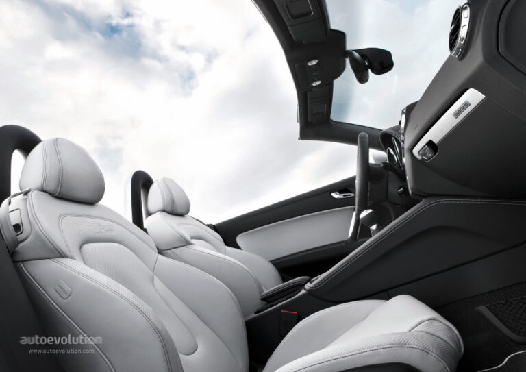 Wnętrze było zaprojektowane dla dwóch osób, oferując sportowe fotele kubełkowe z wysokimi podpórkami. Roll-bary za siedzeniami były podobne do tych z pozostałych modeli TT Roadster. Dodatkowe emblematy i logo pojawiły się na fotelach, w obrotomierzu oraz na listwach progowych drzwi. System informacji dla kierowcy był specyficzny dla modelu RS i zawierał wskaźnik ciśnienia doładowania turbo, temperaturę oleju oraz zegar okrążenia.