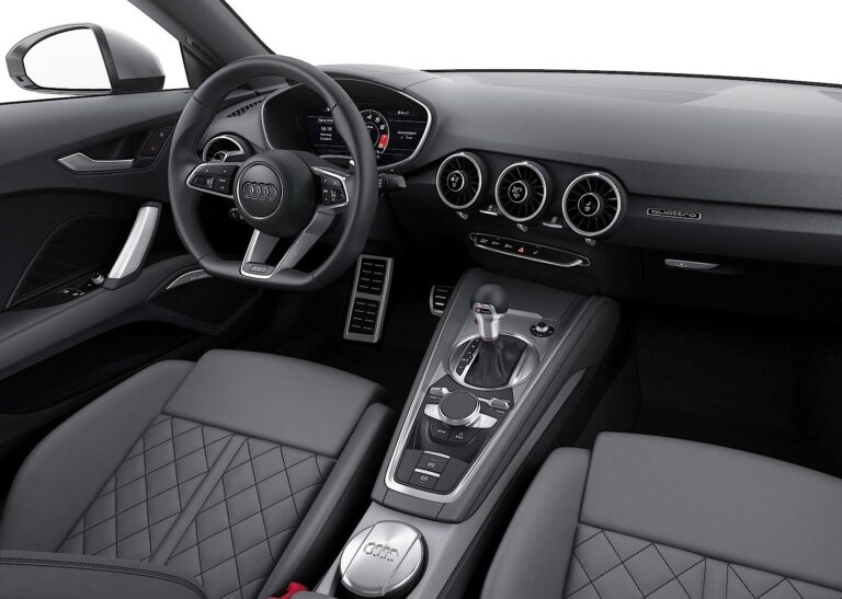 Z lekkimi, niemal unoszącymi się liniami wnętrze również wyraża sportowy charakter nowego Audi TT i TTS. Centralna koncepcja wnętrza skupia się na kierowcy. Wszystkie elementy sterujące są zgrupowane wokół kierowcy. Płynne, odpowiadające kształty charakteryzują konsolę tunelu centralnego i obramowania drzwi. Z góry wąska deska rozdzielcza przypomina skrzydło samolotu; okrągłe otwory wentylacyjne – klasyczna cecha TT – przypominają silniki odrzutowe.