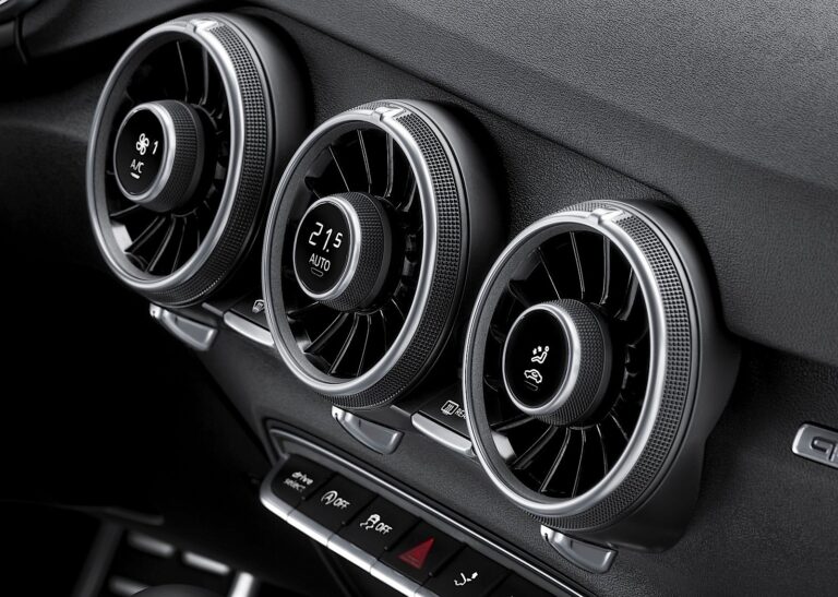 Otwory wentylacyjne odgrywają ważną rolę w koncepcji obsługi. Mieszczą one sterowanie klimatyzacją lub opcjonalnym systemem automatycznej klimatyzacji deluxe. Sterowania do podgrzewanych siedzeń, trybu cyrkulacji, temperatury, dystrybucji przepływu powietrza i siły przepływu powietrza znajdują się na ich osiach. Otwory wentylacyjne to tylko jeden przykład wysokich standardów, do których dąży marka premium w zakresie funkcji, designu i wykonania wszystkich komponentów kabiny. Audi całkowicie zrewidowało paletę kolorów i materiałów, aby podkreślić sportowość nowego TT i TTS.