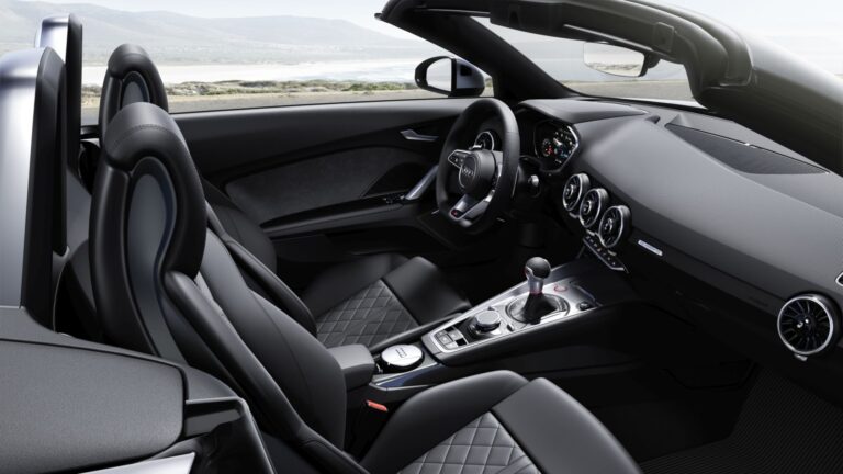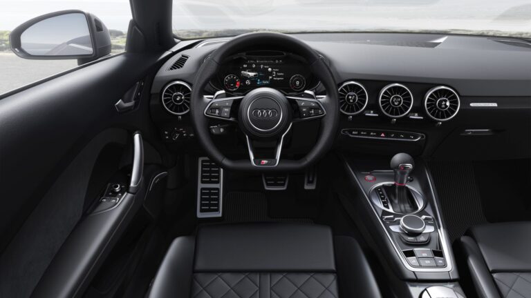 W środku kierowca ma do dyspozycji Audi Virtual Cockpit, który oferuje dodatkowy wyświetlacz sportowy, dostarczający informacji o mocy silnika, momencie obrotowym i przeciążeniach. Wersja TTS ma swoje specyficzne menu wyświetlacza, niedostępne w innych modelach TT. W centralnej części deski rozdzielczej, w wentylacjach powietrza zainstalowane zostały wyświetlacze temperatury, przepływu powietrza oraz prędkości wentylatora – to eleganckie rozwiązanie oszczędzające miejsce.
