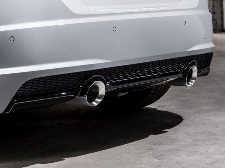 Nowy Audi TTS wykorzystuje sportowe detale, aby podkreślić swój status najwyższego modelu rodziny TT od Audi. Elementy w matowym aluminium lśnią w osłonie chłodnicy Singleframe z emblematem TTS oraz matowym czarnym wstawieniem z tytanu. Nowy poziomy wlot powietrza w zderzaku również przyciąga uwagę. Zakończony na końcach, tworzy wąskie i pionowe leje na tej samej wysokości, co boczne wloty powietrza. Pełnowymiarowy przedni splitter, pionowe wloty powietrza oraz listwy wykończeniowe także prezentują aluminiowy wygląd. Wyraźnie zarysowane progi podkreślają sportowy charakter widziany z boków. Wskazane pionowe wloty powietrza pod tylnymi światłami oraz poszerzony dyfuzor z czterema końcówkami układu wydechowego to szczególne akcenty z tyłu.