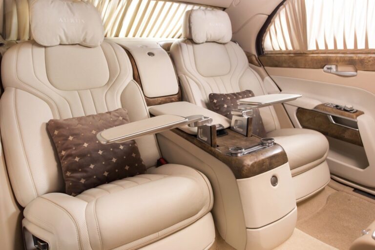 Wnętrze łączyło skórę i drewniane wykończenia w ekskluzywnym rosyjskim stylu. Wyświetlacz infotainment znajdował się na tym samym poziomie co ekran TFT zainstalowany w panelu instrumentów i całym panelu deski rozdzielczej. W konsoli środkowej umieszczono selektor biegów oraz pokrętło do sterowania systemem infotainment. Aurus oferował opcję wyboru między dwoma indywidualnymi siedzeniami a kanapą przystosowaną dla dwóch osób z tyłu. Wszystkie siedzenia miały możliwość elektrycznego odchylania i przesuwania.