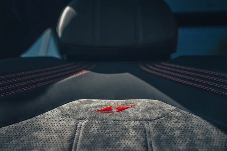Nowy, falisty design siedzeń dostępny jest w konfiguracjach cztero-, pięcio- i siedmioosobowych. Wprowadzenie nowego, unikalnego i nowoczesnego wzoru siedzeń zapewnia bardziej sportowy wygląd z prostymi liniami przeszycia w obszarze ramion. Nowy wzór przeszycia definiuje falowanie, dostępne w kolorach skór podstawowych lub dodatkowych, i łączy się z elementami Alcantary®, aby stworzyć nową estetykę. Oparcia siedzeń wykończone są haftowanym motywem 'S’.