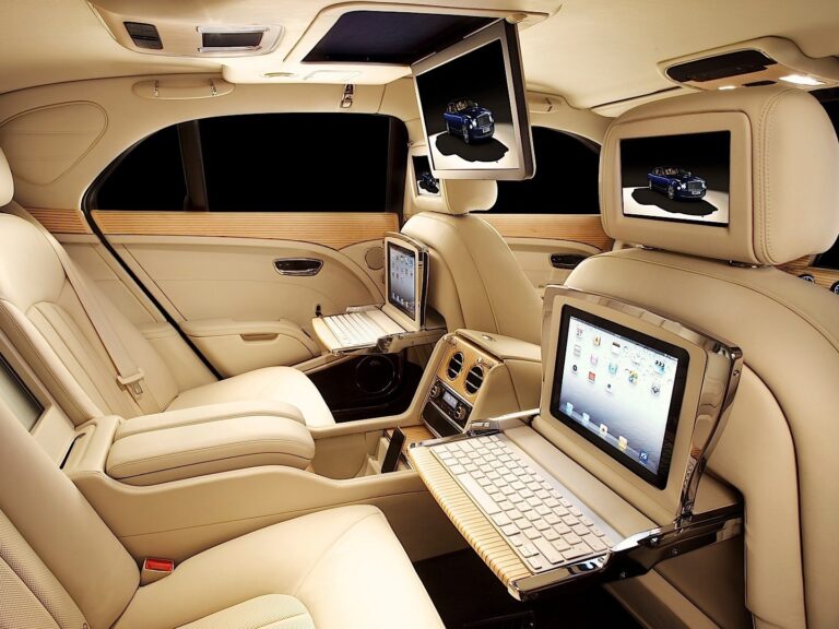 Najnowsze technologie samochodowe są dyskretnie wkomponowane w wspaniałe wnętrze Bentleya Mulsanne. System multimedialny z dyskiem twardym o pojemności 40 GB, nawigacją satelitarną, audio/wideo, danymi osobistymi, połączeniem telefonicznym i Bluetooth® connectivity. Górna część deski rozdzielczej posiada 8-calowy ekran multimedialny, umieszczony niepostrzeżenie za elektrycznie obsługiwanym wykończonym drewnem drzwiami, podczas gdy poniżej znajduje się stylowa, obszyta skórą szuflada na MP3.