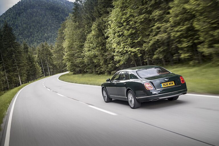 Przyspieszenie do 60 mph zajmuje zaledwie 5.1 sekundy w drodze do maksymalnej prędkości 184 mph (296 km/h). Silnik V8 Mulsanne’a posiada kluczowe technologie, takie jak dezaktywacja cylindrów i zmienne fazowanie wałków rozrządu, które redukują zarówno zużycie paliwa (19.3 mpg / 14.6 L/100 km w cyklu mieszanym), jak i emisję CO2 (342 g/km).