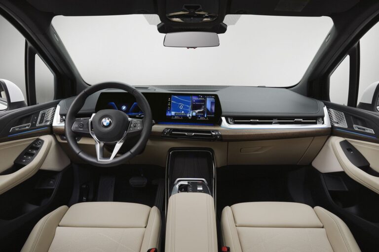 Rozmiar i wszechstronność wnętrza nowego BMW 2-Series Active Tourer są jeszcze wyraźniej podkreślone przez fundamentalny redesign wprowadzony przez samochód drugiej generacji. Geometria wnętrza i wiele detali czerpią inspirację z progresywnego konceptu wnętrza, który reprezentuje technologia szczytowa BMW iX. Kluczowymi cechami tej reinterpretacji są smukła deska rozdzielcza, która służy jako scena dla zakrzywionego wyświetlacza BMW, „wiszący” podłokietnik z zintegrowanym panelem sterującym oraz powszechna redukcja liczby fizycznych elementów sterujących.