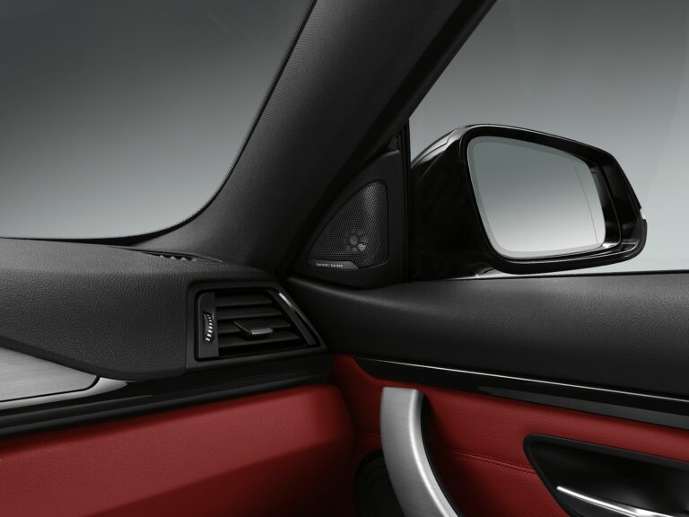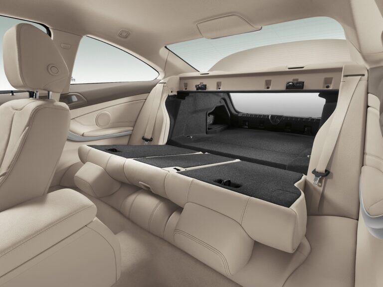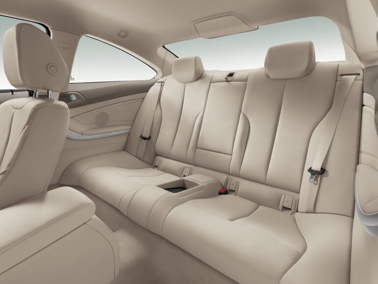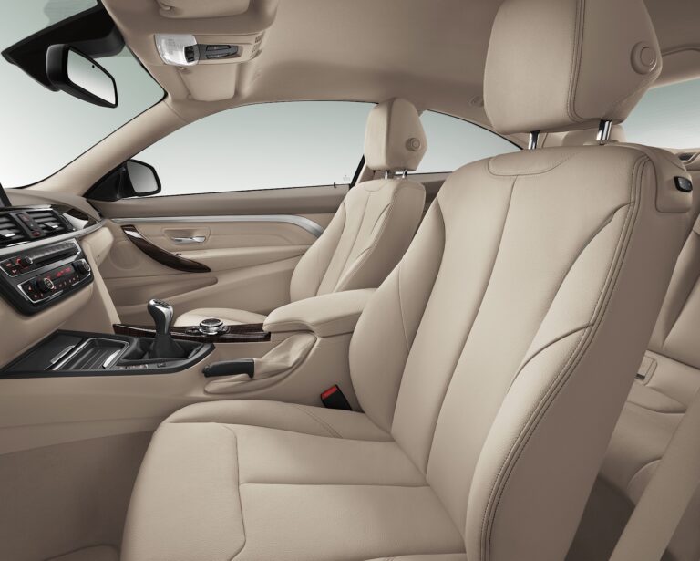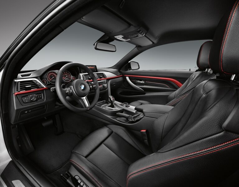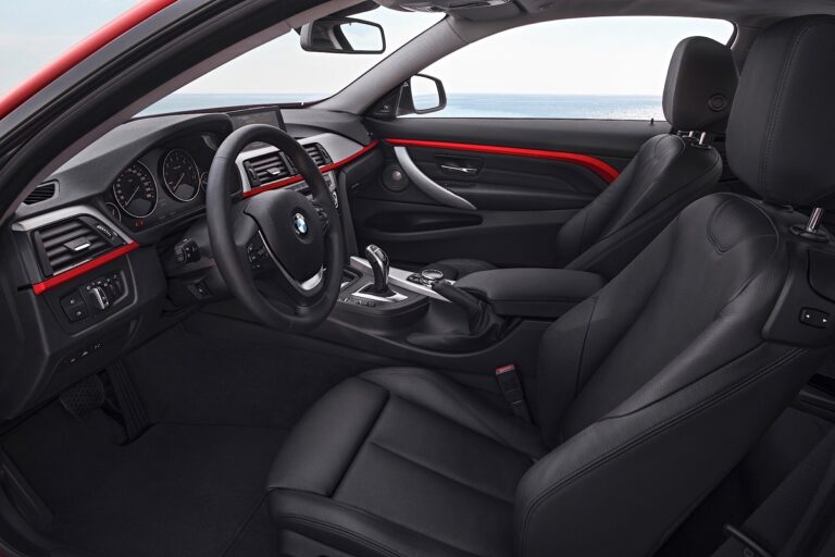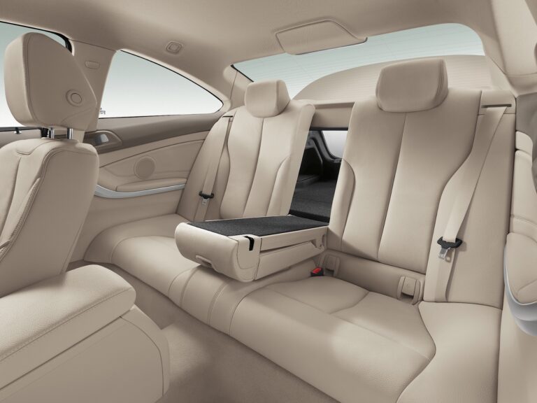 Dynamiczne poziome linie deski rozdzielczej rozciągają się na opcjonalne dwukolorowe wykończenie paneli drzwi i boków, owinięte wokół kierowcy i pasażera z przodu w jednolitym ruchu, nadając wnętrzu dynamiczny charakter. Zestawienie powierzchni i linii w bocznych częściach samochodu stanowi również skuteczną prezentację typowo długich drzwi coupe, a poprzez kontynuację akcentu wizualnie łączy przód z tyłem wnętrza. W tylnym pomieszczeniu mocno wyprofilowane siedzenia dodatkowo podkreślają sportowe cechy BMW serii 4 Coupe. Wbudowane zagłówki i szerokie, ciągłe wsparcia boczne nadają tylnej kanapie wygląd dwóch oddzielnych siedzeń.