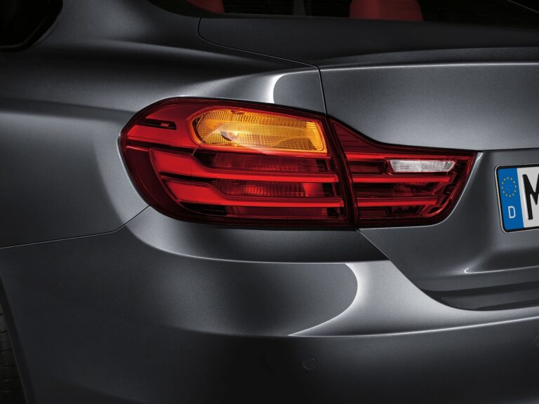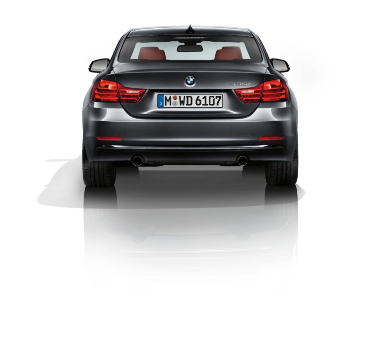 Sportowy charakter BMW serii 4 Coupe sięga do mocnego designu tylnej części. Wyraziste poziome linie i szeroko rozstawione tylne światła umiejscowione na skrajnych krawędziach tyłu przyciągają dodatkową uwagę do muskularnych nadkoli i szerokiego toru. Ostro kątowe tylne okno obniża tył samochodu i nadaje całości jeszcze bardziej potężny wygląd. Wyraźnie eksponuje również szerokie ramiona samochodu. L-kształtne tylne światła BMW serii 4 Coupe harmonijnie wkomponowują się w ogólny design pojazdu. Kontynuują one linię przetłoczenia z boków, tworząc płynne połączenie z tyłem.
