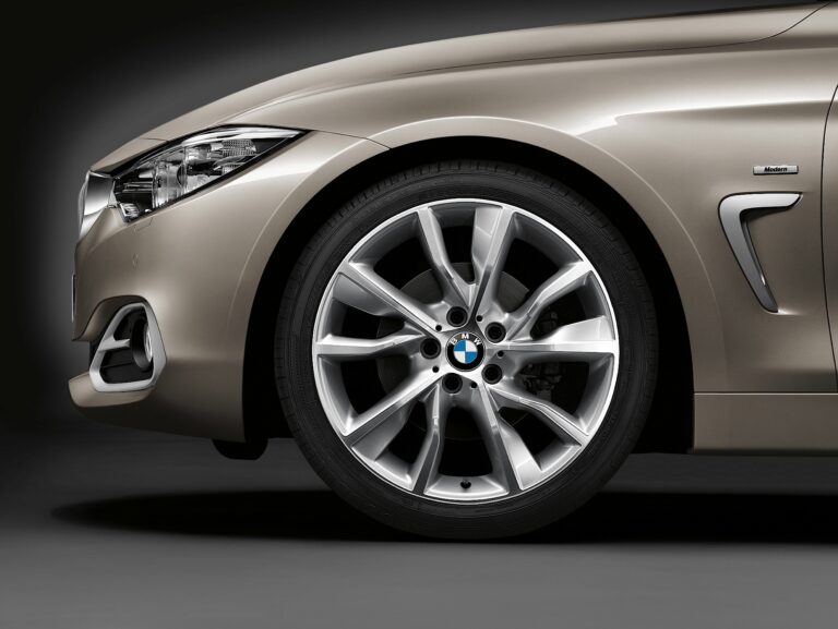 Wysokiej jakości matowe chromowane elementy zewnętrzne definiują nowoczesną estetykę Modern Line, a grill BMW z 11 szczelinami w matowym chromie, satynowane aluminiowe Air Breathers, obramowania zewnętrznych wlotów powietrza i listwy wykończeniowe w tylnym zderzaku kontynuują ten temat. Standardowa obwódka okien w satynowanym aluminium zwraca uwagę na grafiki okien i płynnie łączy się z elementami wykończeniowymi z przodu i z tyłu. 18-calowe lub (opcjonalnie) 19-calowe koła aluminiowe w stylu turbiny nadają nowego akcentu zewnętrznemu designowi, podczas gdy jasny kokpit w połączeniu z ciemną kierownicą (oba również w kolorze czarnym) tworzy bardzo szczególne poczucie przestrzeni. Tapicerka skórzana lub kombinacja materiałów skóra-tkanina w kolorze ostrygowym lub czarnym oraz wybór czterech powierzchni wykończeniowych z akcentami w kolorze Pearl Gloss Chrome zapewniają atrakcyjne zestawienie materiałów.