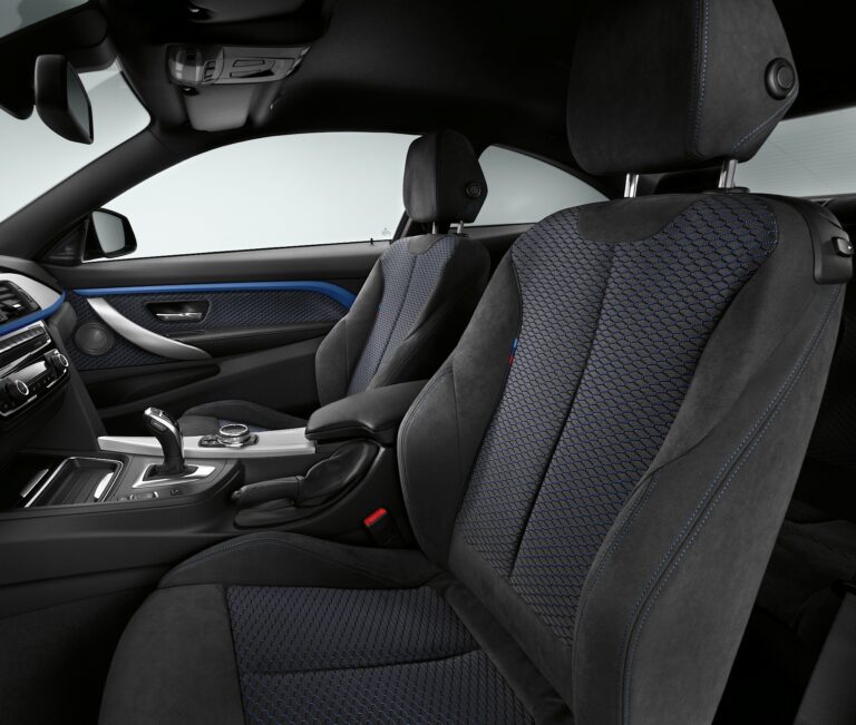 Klienci chcący szczególnie uwydatnić wyróżniające się dynamiczne cechy nowego BMW serii 4 Coupe znajdą pakiet M Sport jako kuszącą propozycję. Oprócz aerodynamicznego pakietu, który zawiera liczne elementy nadwozia (przedni zderzak z dużym wlotem powietrza, tylny zderzak z dyfuzorem, progi boczne), i wykończenia BMW Individual High-gloss Shadow Line, ekskluzywny opcjonalny kolor nadwozia Estoril Blue metallic zapewnia niezaprzeczalnie sportowy wygląd i niezrównaną obecność na drodze – efekt, który potęgują 18-calowe lub (opcjonalnie) 19-calowe lekkie koła aluminiowe w charakterystycznym stylu M. Wnętrze pojazdu, takie jak wykończenia progowe M, skórzana kierownica M i podnóżek M, tworzy sportową, lecz elegancką atmosferę. Kierowca i pasażer z przodu mogą wygodnie zasiąść w sportowych siedzeniach Hexagon/Alcantara z lamówką M oraz niebieskimi kontrastowymi przeszyciami, oferowanych wyłącznie jako część pakietu M Sport. Elementy techniczne tego pakietu obejmują sportowe zawieszenie M oraz opcjonalne sportowe hamulce M w kontrastowym niebieskim wykończeniu.