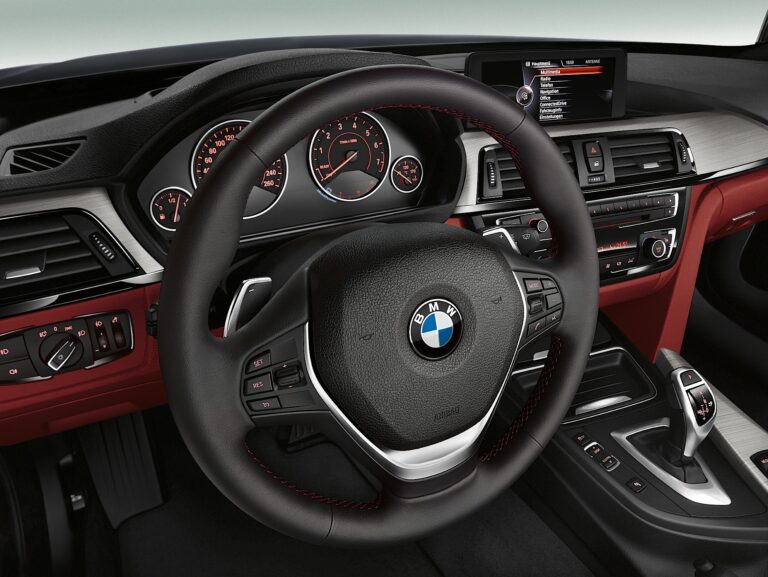 Sport Line dodaje dodatkową głębię do dynamicznego repertuaru BMW serii 4 Coupe z wyborem wyróżniających się cech zewnętrznych w wysokim połysku czerni. Dodatkowo, standardowe czarne B-słupki i czarna obwódka okien nadają sportowemu charakterowi samochodu jeszcze większy nacisk. Dziewięć wyraźnie uformowanych listków grilla w kolorze czarnym z chromowanym obramowaniem nadaje przedniemu końcowi szczególnie sportowy i czujny wygląd. Trzy czarne wloty powietrza w przednim zderzaku oraz również błyszczące czarne Air Breathers przyciągają uwagę do aerodynamicznych cech pojazdu. 18-calowe lub 19-calowe (opcjonalnie) lekkie koła aluminiowe – w zależności od modelu – w podwójnym wzorze zapewniają dodatkową dawkę sportowego teatru. Z tyłu, BMW serii 4 Coupe z Sport Line można rozpoznać po czarnej listwie wykończeniowej na poziomie tylnego zderzaka i czarnych końcówkach rur wydechowych. Wewnątrz samochodu kontrast między czarnymi a czerwonymi akcentami, takimi jak czerwone pierścienie wykończenia w wewnętrznej części wskaźników oraz czerwone przeszycia na sportowej kierownicy, zapewnia odpowiedni sportowy styl. Opcjonalny rozszerzony wariant wyposażenia z czerwonymi skórzanymi sportowymi siedzeniami, czerwonymi wykończeniami paneli drzwi i czerwonym dolnym fragmentem deski rozdzielczej może być zamówiony wyłącznie dla BMW serii 4, by przenieść sportową atmosferę na nowy poziom.