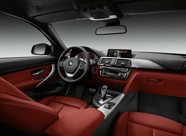 Wnętrze BMW serii 4 Coupe łączy sportowy charakter z ekskluzywnością w stylowy sposób. Z przodu kabiny zastosowano podejście znane jako „layering” – mądrze wykorzystując przestrzeń przez strukturyzację linii i powierzchni w warstwy – co zapewnia naturalna bazę do ikonicznego skupienia się na kierowcy, ale nie wyklucza pasażera z przodu z akcji. Wszystkie elementy sterujące związane z prowadzeniem są ergonomicznie rozmieszczone wokół kierowcy, co zapewnia mu lub jej optymalny dostęp do wszystkich funkcji. Automatyczne podajniki pasów, sportowa kierownica, krystalicznie czyste okrągłe wskaźniki w czarnym panelu i wolnostojący, płaski monitor iDrive podkreślają poczucie funkcjonalnej elegancji. Kontroler dotykowy iDrive – w zasięgu ręki na konsoli centralnej – oraz opcjonalnie przesuwany skórzany podłokietnik pomiędzy przednimi siedzeniami dopełniają wyjątkowej użyteczności i komfortu wnętrza.