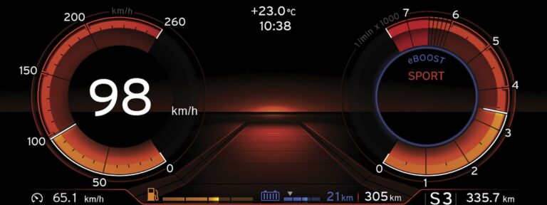 Po włączeniu trybu SPORT za pomocą przełącznika Driving Experience Control, Multifunkcyjny wyświetlacz instrumentów koncentruje się na odczytach związanych z wydajnością, takich jak prędkość pojazdu, obroty silnika lub aktualna moc silnika.