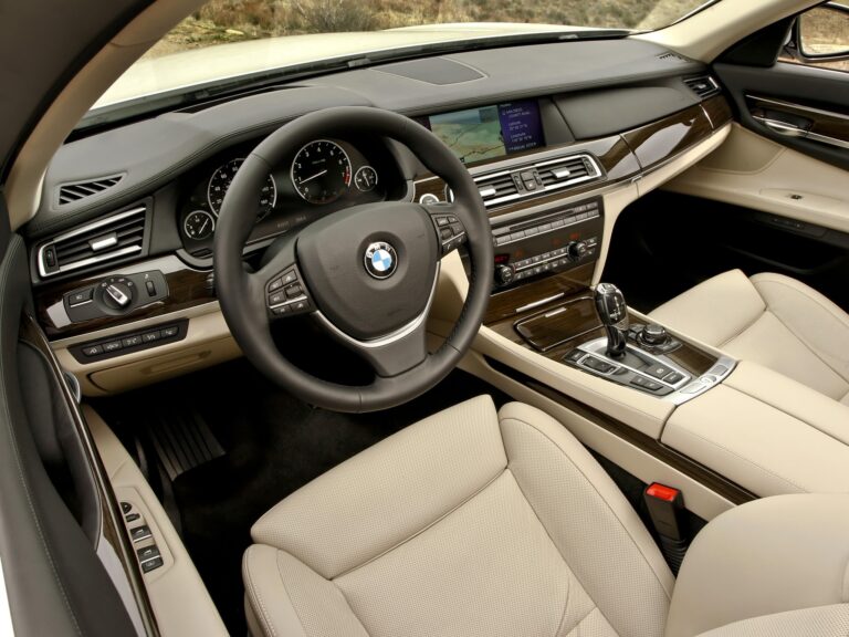 Wnętrze oferowało nową aranżację z poziomymi liniami na desce rozdzielczej, które były kontynuowane na panelach drzwiowych. Pakiet technologiczny samochodu był bogaty. Zawierał nowy system infotainment z udoskonalonym iDrive. Zestaw wskaźników oferował mieszankę analogowych i cyfrowych wyświetlaczy, przygotowując klientów na kolejną serię. Dostępnych było do pięciu kamer wideo, które wspierały kierowcę. Jedna z nich była do widoku na podczerwień z przodu, dwie zamontowane na przednich błotnikach służyły do obserwacji lewej i prawej strony, jedna była do manewrowania tyłem, a kolejna do rozpoznawania znaków drogowych. Przestronność wnętrza była znaczna, szczególnie w wersji z wydłużonym rozstawem osi.