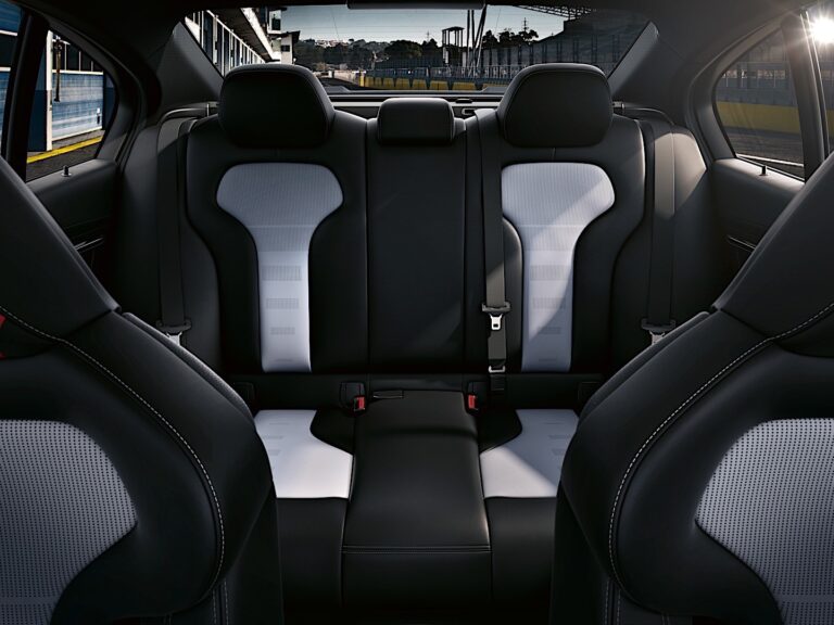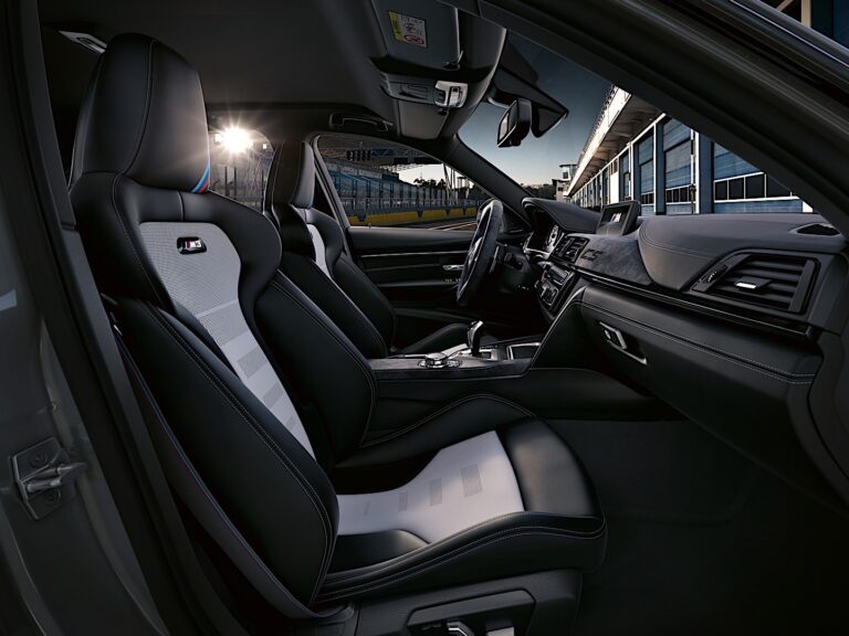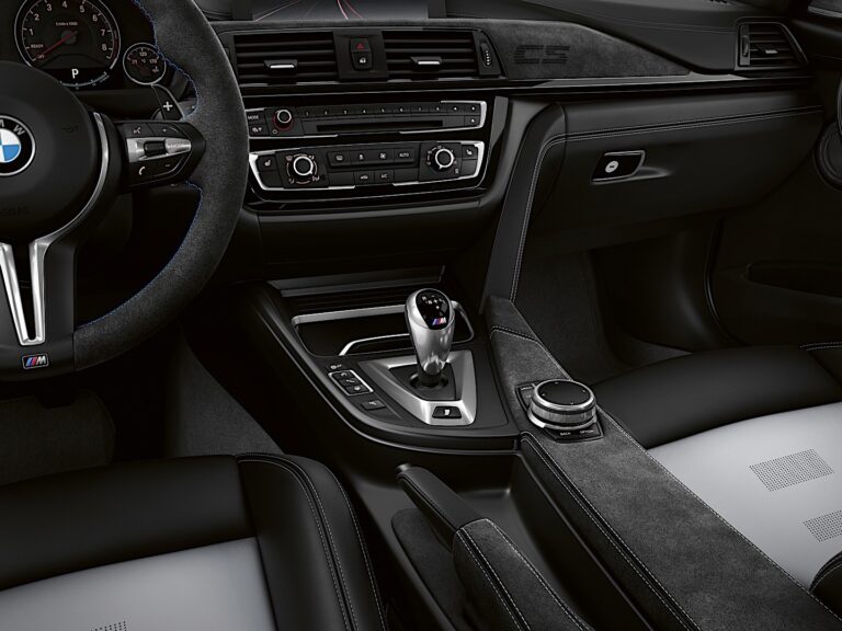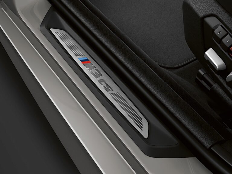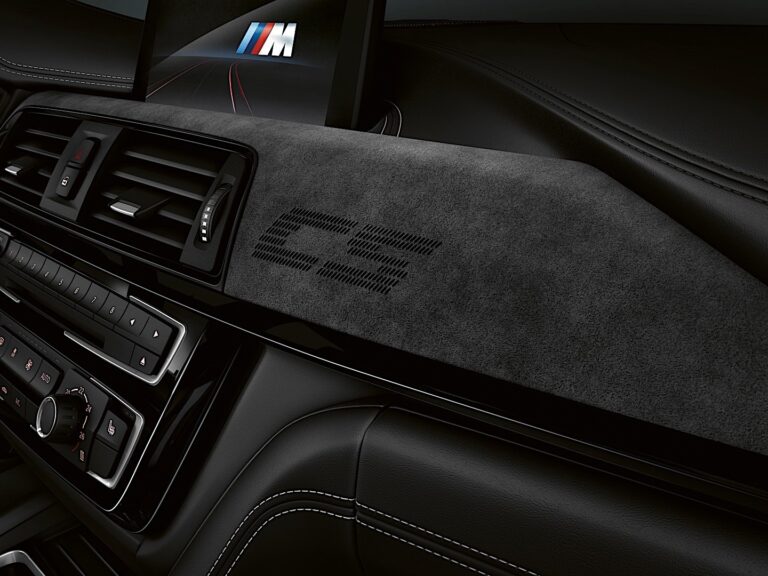 Wnętrze nowego BMW M3 CS charakteryzuje się bogatym użyciem dwukolorowej, pełnej skóry w odcieniu Silverstone/Czarnym oraz Alcantary, co tworzy przekonywujący i dobrze przemyślany klimat pełen sportowej elegancji i wyrafinowania. Żaden kierowca M3 CS nie będzie musiał rezygnować z przyjemności życia. Wśród standardowego wyposażenia znajdują się automatyczna klimatyzacja, system dźwiękowy Harman Kardon oraz system nawigacji Professional. Zgodnie z duchem, projektanci BMW M GmbH nadali nowemu M3 CS wygląd, który odzwierciedla sportowy zamysł samochodu. Cechą charakterystyczną jego wyrazistego przodu, z nowoczesnymi podwójnymi lampami LED, jest przedni zderzak z dużymi, trójsekcyjnymi wlotami powietrza. Spojler Gurneya na klapie bagażnika został nowo zaprojektowany specjalnie dla nowego M3 CS i współpracuje z przednim splitterem oraz tylnym dyfuzorem, aby zminimalizować dynamiczny docisk. Te elementy wykonane są z lekkiego i niezwykle sztywnego materiału kompozytowego wzmocnionego włóknem węglowym (CFRP), podobnie jak maska i dach nowego BMW M3 CS.