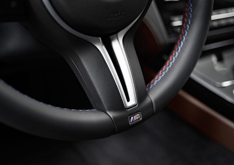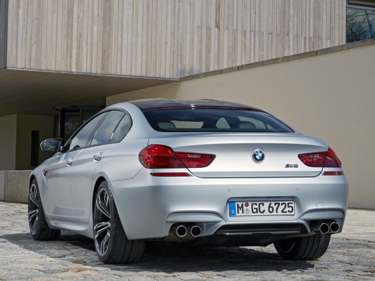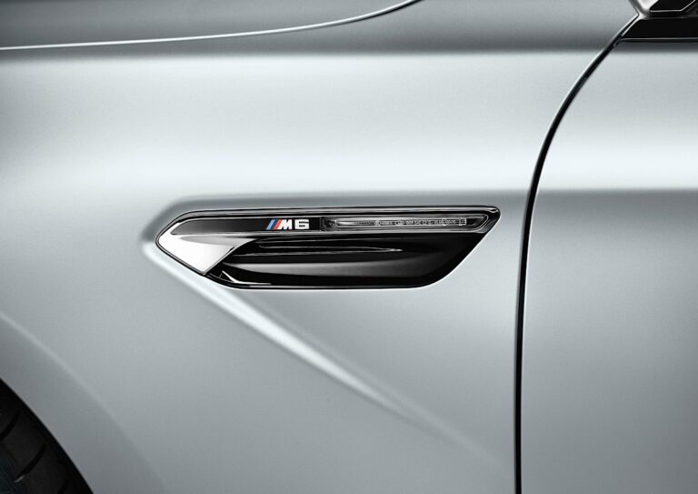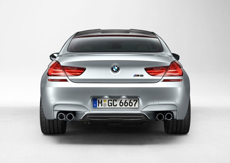 Wyraźnie wybrzuszone nadkola przyciągają wzrok na szerokość toru specyficzną dla BMW M6 Gran Coupe. Charakterystyczne żaluzje M, aerodynamicznie zoptymalizowane lusterka zewnętrzne, standardowy pakiet BMW Individual High-gloss Shadow Line oraz ekskluzywne 20-calowe lekkie felgi M w podwójnym wzorze podkreślają wyrazisty wygląd samochodu, podobnie jak inny znak M – podwójne rury wydechowe umieszczone na zewnętrznych krawędziach tylnego zderzaka. Również zintegrowany w tylnym zderzaku dyfuzor z CFRP, którego zadaniem jest optymalizacja przepływu powietrza wzdłuż podwozia samochodu.
