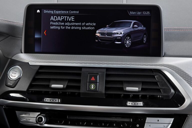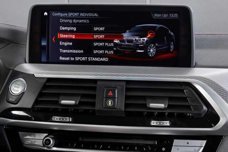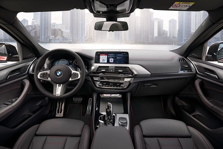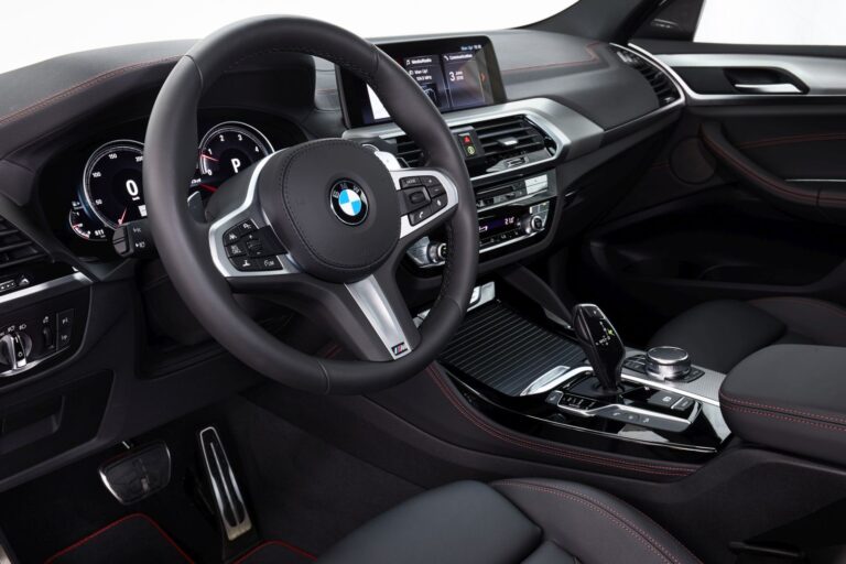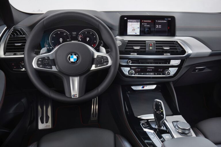 Wyraźne różnice w wnętrzu. Wyposażenie każdego z modeli xLine, M Sport X i M Sport obejmuje ekskluzywne cechy designu, które wyróżniają wnętrze nowego BMW X4. Sportowe fotele z materiałowymi/skórzanymi obiciami oraz paski wykończeniowe z wysokiego połysku w czerni z akcentami w perłowym chromie nadają kabinie modelu xLine purystyczną elegancję. Panele sterujące audio i klimatyzacją są otoczone perłowym chromem z akcentami w wysokim połysku. W wariancie M Sport, takie cechy jak skórzana kierownica M, sportowe fotele w specyficznym dla M stylu, sufit BMW Individual w kolorze antracytowym oraz ekskluzywne paski wykończeniowe z Aluminium Rhombicle Dark z paskami w perłowym chromie podkreślają wszechstronność sportową samochodu. Model M Sport również wyposażony jest w sportowe fotele specyficzne dla M, skórzaną kierownicę M oraz sufit w kolorze antracytowym BMW Individual, któremu towarzyszą paski wykończeniowe z Aluminium Rhombicle z akcentami w perłowym chromie.