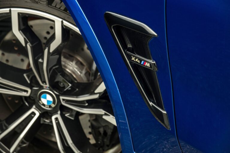 Charakterystyka osiągów BMW X3 M Competition i BMW X4 M Competition jest uzupełniana przez wysoką wydajność standardowego układu hamulcowego M compound. Z czterema pistonowymi zaciskami stałymi z przodu i jednopistonowymi zaciskami pływającymi z tyłu gwarantuje doskonałe hamowanie. Zaciski hamulcowe noszą logo M i są standardowo wykończone na niebiesko, a na życzenie w wysokim połysku na czarno lub czerwono. Perforowane i wentylowane wewnętrznie tarcze mają średnicę 395 mm na przednich kołach i 370 mm na tylnych. W konstrukcji compound, doskonale dostosowanej do wyścigów, szare żeliwne tarcze hamulcowe są połączone z aluminiowymi osłonami. Ta konstrukcja pozwala osiągnąć precyzyjne dawkowanie hamulca, niską wagę i zwiększoną stabilność termiczną. Doskonale zgrany ogólny pakiet dla maksymalnych osiągów obejmuje również 21-calowe lekkie felgi M z mieszanymi oponami w rozmiarze 255/40 ZR21 z przodu i 265/40 ZR21 z tyłu: w połączeniu z tylną orientacją ustawienia M xDrive, umożliwia to szczególnie intensywne przenoszenie sił prowadzących podczas dynamicznych zakrętów. Nowa felga M 892M Star Spoke w wykończeniu Jet Black burnished oszczędza 2 kilogramy wagi na koło. Alternatywnie, znana felga M 765M V-Spoke również dostępna jest w wykończeniu Jet Black burnished.