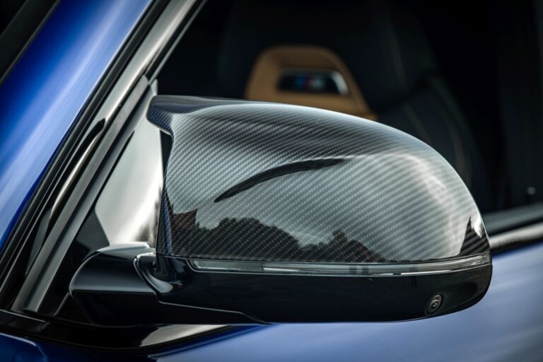 Wloty powietrza na przednich panelach bocznych oraz aerodynamicznie zoptymalizowane zewnętrzne lusterka M przyczyniają się do redukcji oporu powietrza. Osłony lusterek zewnętrznych oraz charakterystyczne żebra zintegrowane w wlotach powietrza mają wykończenie w wysokim połysku. BMW X3 M Competition ma specyficzny dla M spojler dachowy w kolorze nadwozia, którego kształt przedłuża linie widoku bocznego w potężne tylne. Spojler tylna w wysokim połysku, umieszczony na klapie bagażnika, dopełnia sportowy wygląd BMW X4 M Competition. Dodatkowo, modele High-Performance różnią się od standardowych wersji BMW X3 i BMW X4 kolorem nadwozia. Zamiast czarnych końców nadwozia, przednie i tylne zderzaki, otoczenia nadkoli oraz krawędzie progów są wykończone całkowicie w kolorze nadwozia. Dodatkowe indywidualne akcenty można dodać za pomocą opcjonalnych zewnętrznych lusterek M Carbon oraz, w przypadku BMW X4 M Competition, tylnego spojlera wykonanego z włókna węglowego wzmacnianego tworzywem sztucznym (CFRP).