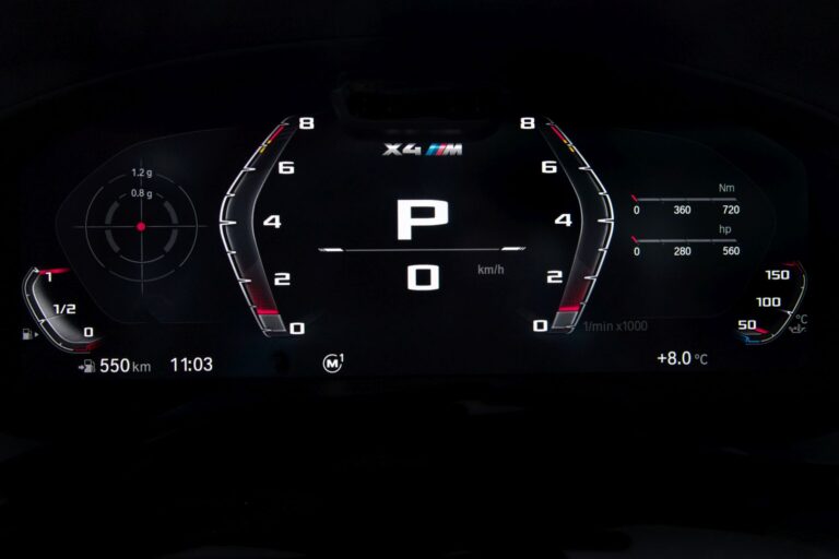 BMW Live Cockpit Professional oferuje w pełni cyfrową sieć wyświetlaczy: wysokiej rozdzielczości zestaw wskaźników za kierownicą oraz wyświetlacz kontrolny mają ekran o przekątnej 12,3 cala. Na w pełni cyfrowym wyświetlaczu instrumentów można pokazać sekcję mapy nawigacji, wyświetlacze statusu systemów asystujących kierowcy lub wizualizację otoczenia w formie 3D, w zależności od potrzeb, a dostępny jest także M View z specyficznymi opcjami wyświetlania, zapożyczonymi z modeli BMW M8. Treści wyświetlane specyficzne dla M są również dostępne w opcjonalnym systemie Head-Up Display. Projektuje on informacje związane z jazdą na przednią szybę – to znaczy bezpośrednio w polu widzenia kierowcy. Bez konieczności odrywania wzroku od drogi, kierowca może widzieć informacje dostarczane przez cyfrowy wskaźnik prędkości oraz wskaźnik biegów, komunikaty z systemu rozpoznawania znaków drogowych, instrukcje nawigacyjne i wielokolorowy pasek prędkości, w tym światła sygnalizujące zmianę biegów.