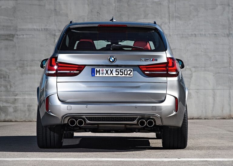 Tyły BMW X5 M i BMW X6 M różnią się znacząco od ich standardowych odpowiedników, emanując bardziej ekskluzywną aurą i podkreślając wyraziste, sportowe akcenty. To podejście szczególnie podkreślają szerokie tylne opony (które są innego rozmiaru niż przednie), charakterystyczne tylne zderzaki M pomalowane w kolorze nadwozia, oraz typowy czterokołowy układ wydechowy M. Element dyfuzora (również w kolorze nadwozia) adaptowany z samochodów wyścigowych pomaga zapewnić aerodynamikę zoptymalizowanego przepływu powietrza na dolnej krawędzi tylnego zderzaka, co pozwala nowym modelom M ponownie podkreślić imponującą funkcjonalność swoich cech projektowych. Tylni spojler pomalowany w kolorze nadwozia w BMW X6 M redukuje siłę nośną tylnej osi.