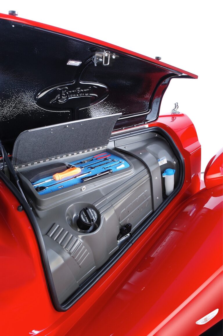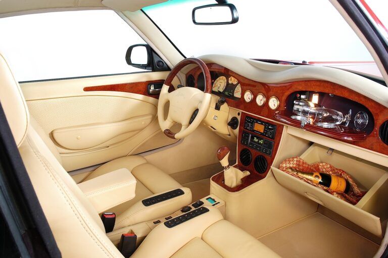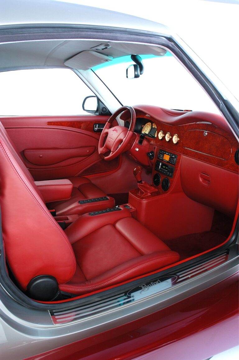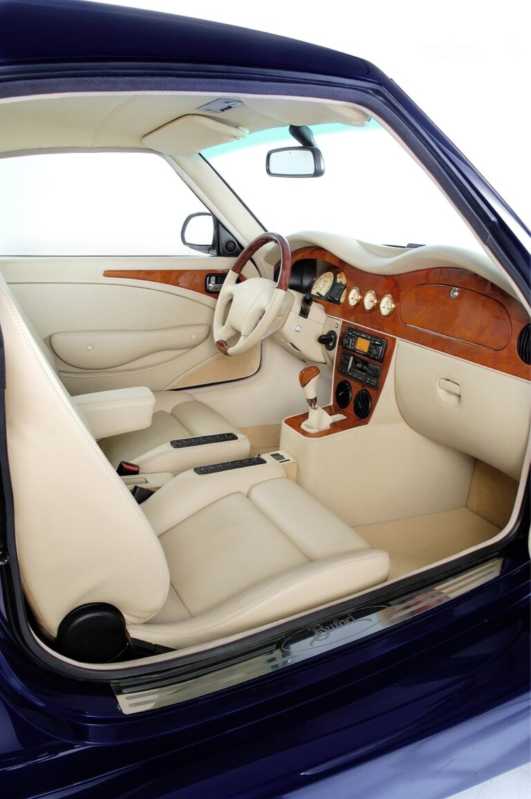 W środku, skórzane i drewniane wykończenia były ręcznie wykonane, co prowadziło do produktów wysokiej jakości. Kabina oferowała miejsce tylko dla dwóch osób, oddzielonych wysoką konsolą środkową i składanym podłokietnikiem.