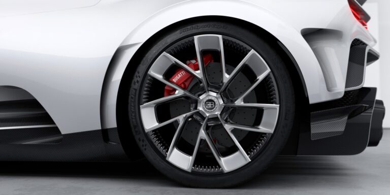 „Inkorporowaliśmy design o kształcie trapezoidu w procesie rozwoju, ale wzięliśmy go w nowym kierunku,” mówi projektant. Zamiast kopiować klasyczną włoską formę, w której mięśnie biegną od tyłu do przedniego koła, sugerując dynamiczny skok do przodu, Bugatti obrało nową ścieżkę w Centodieci. Inaczej dominująca linia Bugatti, linia C na słupku B ustępuje miejsca nowemu projektowi, a znacznie mniejsze niż Chiron pięć okrągłych wlotów powietrza, ulokowanych w formie diamentu, zapewnia wystarczający dopływ powietrza do kultowego silnika 16-cylindrowego. W ten sposób Bugatti przeniosło wizualnie skaczący trapezoid EB110 SS w nowe tysiąclecie.