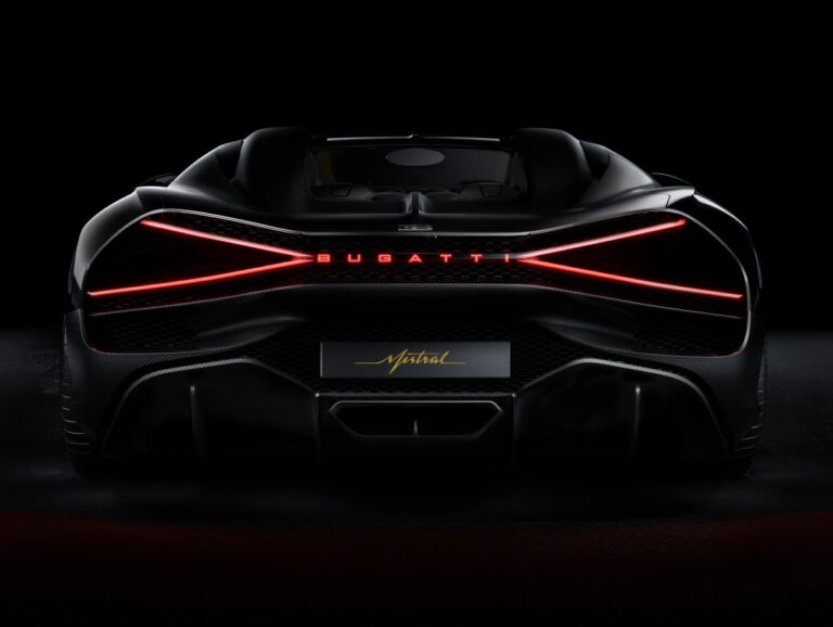 Anscheidt kontynuuje: „Aby odzwierciedlić nowy charakter W16 Mistrala, całkowicie przeprojektowaliśmy jego front, w zgodzie z pionowym układem naszych unikalnych lub niewielu produkowanych modeli, takich jak Divo i La Voiture Noire. Od razu jest nasycony poczuciem ekskluzywności; pionowo ustawione reflektory są w pełni spersonalizowane, a słynny grill w kształcie podkowy został przemyślany tak, aby był znacznie bardziej trójwymiarowy; zarówno głębszy, jak i szerszy. Z tyłu postawiliśmy sobie za cel stworzyć uderzający, ale także bardziej elegancki wariant motywu świateł tylnych Bolide, który na zawsze odcisnął swoje piętno na świecie wzornictwa motoryzacyjnego.