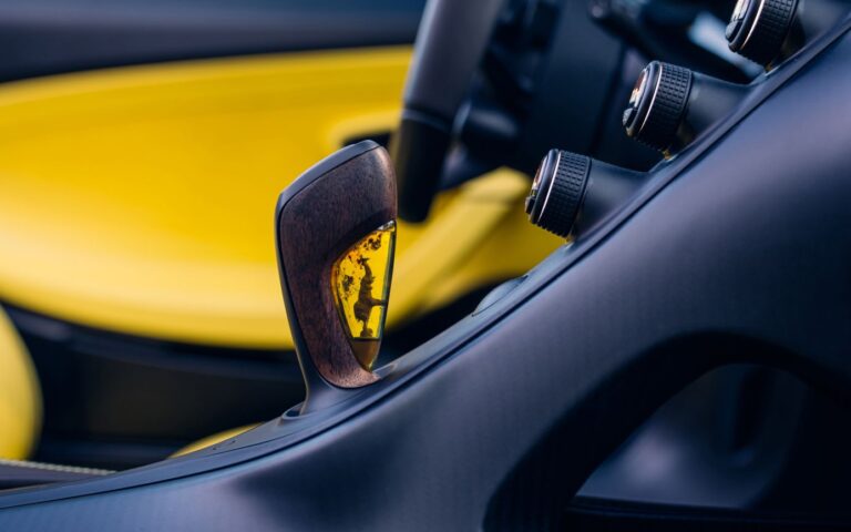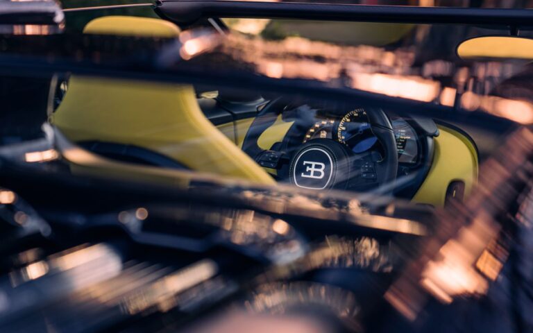 Jest skomplikowana tkanina skórzana używana na nowo zaprojektowanych panelach drzwi, starannie testowana i produkowana zgodnie z normami jakości Bugatti z wizją regularnego użytkowania przez ponad sto lat w przyszłości. A w nawiązaniu do znakomitych przodków W16 Mistrala, dźwignia zmiany biegów – wykonana z jednego bloku aluminium – ma akcent z drewna i bursztynowy wkład z słynną rzeźbą Rembrandta Bugatti 'tańczącego słonia’ w środku. Wersje tej rzeźby zdobiły maskę legendarnego modelu Type 41 Royale; najbardziej luksusowego roadstera, jaki kiedykolwiek stworzono.