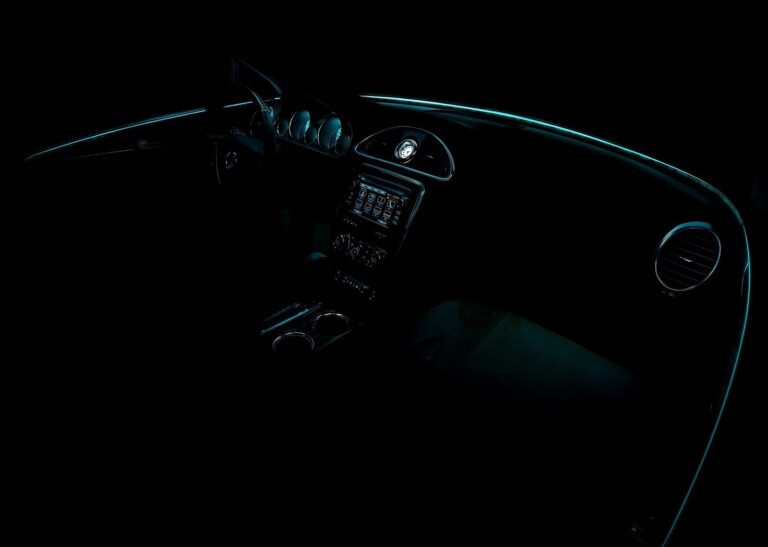 - Nowe lodowate niebieskie LED-owe oświetlenie nastrojowe wokół deski rozdzielczej podkreśla płynne linie Enclave, akcentując przestronność kabiny