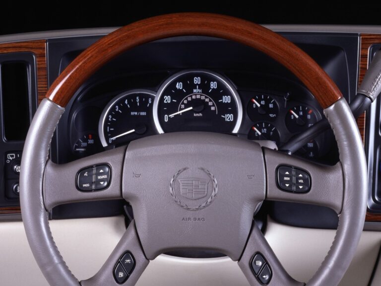 Wnętrze Escalade’a oferowało przestrzeń porównywalną z każdym MPV dostępnym na rynku. Standardowo był wyposażony w 7 miejsc. Skórzana tapicerka była standardowym wyposażeniem wszystkich poziomów wykończenia. Złożony, ośmiokrotny zestaw wskaźników był dość chaotyczny i wzbudzał zdziwienie wśród klientów. Jeśli to nie wystarczało, dodatkowy zegar zamontowano niżej na centralnej konsoli, obok jednostki sterującej klimatyzacją.