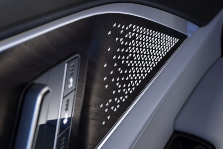 Wnętrze jest czyste i proste, z naciskiem na drugorzędne i trzeciorzędne elementy designu, w tym skomplikowane wzory wytrawiane laserowo przez metalowe wykończenia, co nigdy wcześniej nie zostało zrobione. Duży, zakrzywiony ekran LED jest centralnym punktem, a wszystkie komponenty są artystycznie wkomponowane, zacierając granice między technologią, oświetleniem a dekoracją.