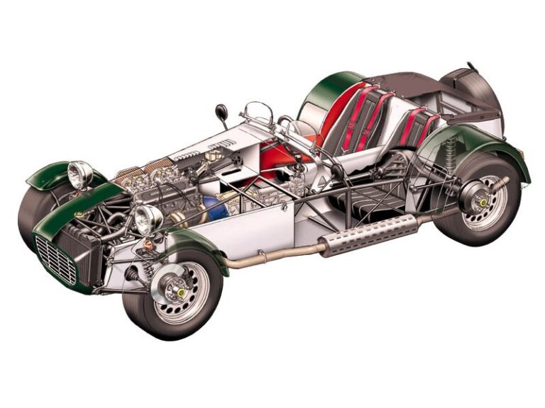 Collin Chapman zaprojektował Lotus Seven w latach 50-tych, a model ten był esencją samochodu wyścigowego dopuszczonego do ruchu. Wiele aut udawało wyścigówki z tablicami rejestracyjnymi, lecz żadne z nich nie mogło dorównać Seven. Brytyjski inżynier miał jeden cel: zamontować silnik w samochodzie, który byłby jak najlżejszy. Graham Nearm, były dealer Lotusa, zakupił prawa do Lotusa i zbudował Seven po tym, jak producent zrezygnował z tego roadstera w swojej ofercie.