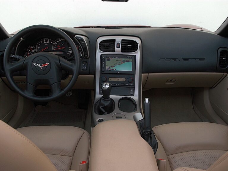 Wnętrze pokryto plastikiem i skórą wyższej jakości w porównaniu do poprzedniego modelu C5 Corvette. Na konsoli centralnej, nachylonej w kierunku kierowcy, umieszczono system informacyjno-rozrywkowy z ekranem dotykowym o przekątnej 6,5”. Wyświetlacz przezierny dostarczał kierowcy informacje o prędkości, obrotach oraz przyspieszeniu bocznym.