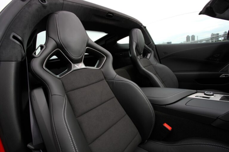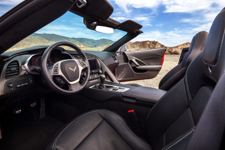 Wnętrze znacząco poprawiło się w porównaniu do C6, która nie zachwycała jakością materiałów. Deska rozdzielcza wyposażona była w mieszany zestaw wskaźników z analogowymi cyferblatami oraz wyświetlaczem TFT, który można było dostosować do potrzeb kierowcy. Na centralnej konsoli znajdował się jeden pokrętło do wyboru trybów jazdy, z dużym, okrągłym przyciskiem „ESP-off” pośrodku. Kolejną zauważalną poprawą był system infotainment z 8-calowym wyświetlaczem dotykowym. GM zachował wyświetlacz przezierny, ale z ulepszonymi funkcjami.